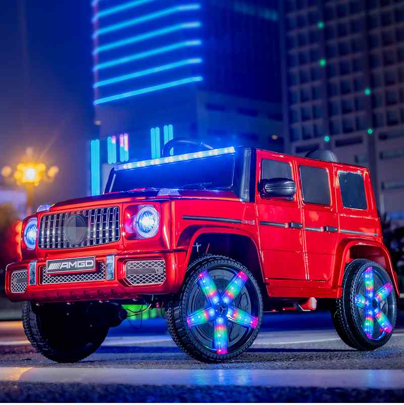 - Big 4x4 electric G-Wagon ride-on car with room for two kids.