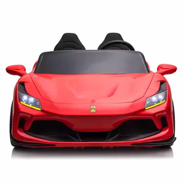 - Description: The car is a 2-seater, battery-operated electric toy car for children. It is a Ferrari-style sports car with a realistic design and is equipped with LED lights, sound effects, and a horn.